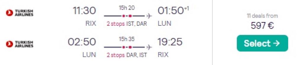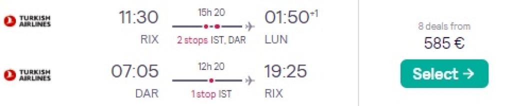 Riia-Lusaka//Dar Es Salaam-Riia al 585€