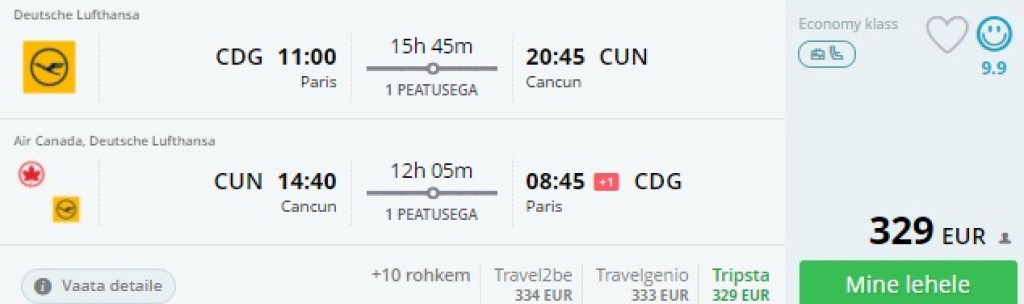 Pariis- Cancun- Pariis Tallinn al. 329€