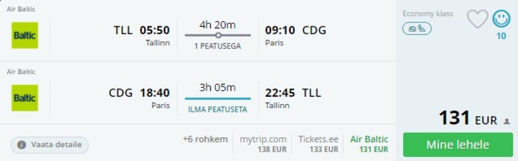 Tallinn- Pariis- Tallinn al. 131€