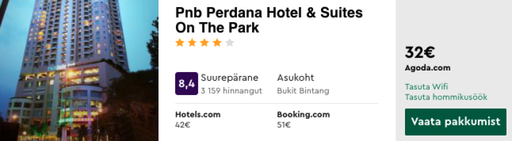 Parima hinnaga majutuse Kuala Lumpuris ja mujal Malaisias leiad läbi hotellihindade võrdlusportaali Momondo.ee