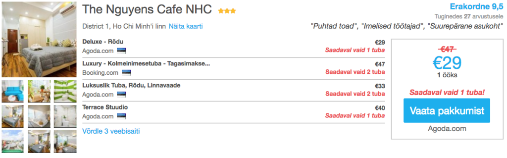 Kui otsid soodsa hinnaga öömaja, siis soovitame parima ülevaate ja hinna saamiseks kasutada hotellihindade võrdlusportaali Hotelscombined.ee