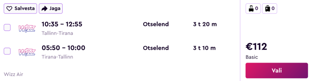 Odavlennufirma Wizz Air pakub hetkel väga hea hinnaga lennupileteid hooajalistele otselendudele Albaaniasse. Soodsaimad edasi-tagasi lennupiletid Tallinnast Tiranasse on saadaval vaid 112€ eest.