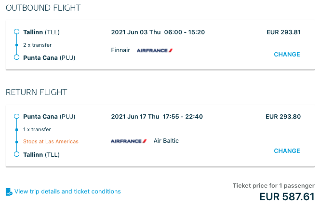 KLM/Air France koostöös partnerlennufirmadega pakuvad hetkel suurepärase hinnaga lennupileteid Tallinnast Dominikaani Vabariiki. Edasi-tagasi lennupiletid Tallinnast Punta Canasse on saadaval alates 556€ eest ning saadavust leiab alates juuni algusest kuni detsembrini välja. Osadel lennukuupäevadel on tagasiteel pikem ümberistumine Pariisis, mis annab ka võimaluse Pariisiga tutvumiseks. Lendude ümberistumised toimuvad olenevalt lennukuupäevadest Helsingis, Riias, Pariisis, Amsterdamis või Santo Domingos.