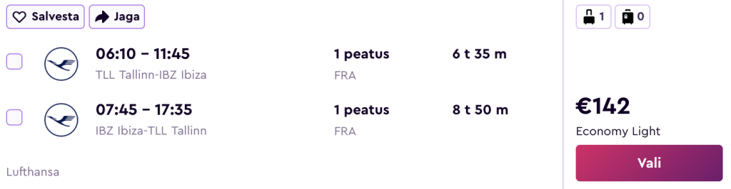 Lufthansa koostöös SWISSiga pakuvad hetkel suurepärase hinnaga lennupileteid Baleaaridele. Edasi-tagasi lennupiletid Tallinnast Ibiza saarele on saadaval alates 142€ eest.