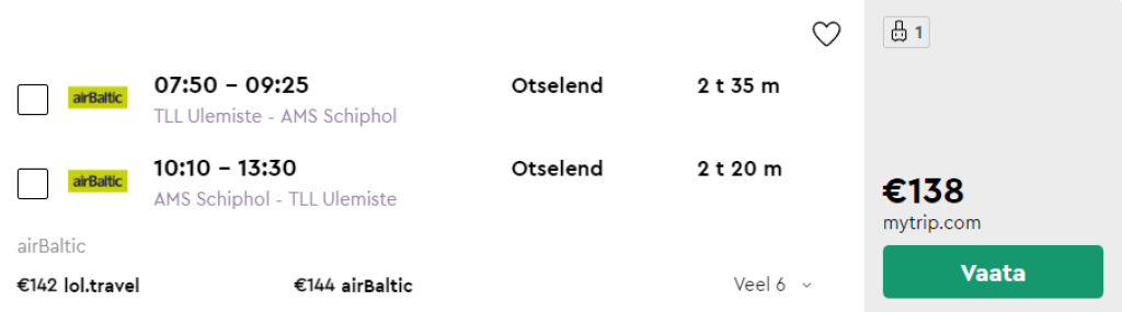 Kui soovid veel mõnevõrra soodsamaid lennupileteid, siis sisesta leitud lennukuupäevad Momondo.ee.