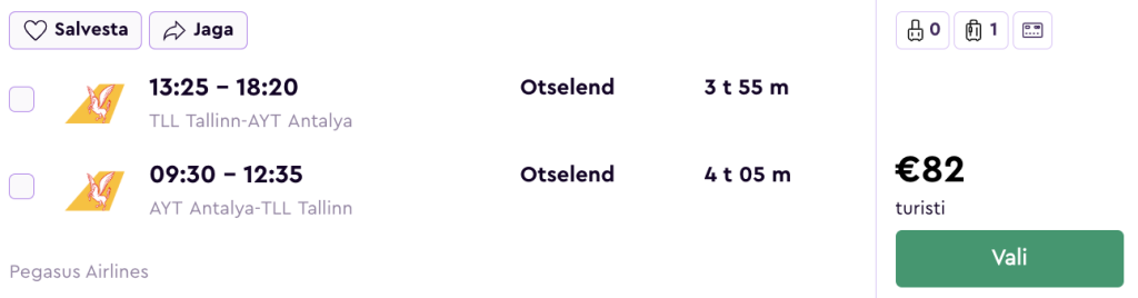 Pegasus pakub hetkel suurepärase hinnaga lennupileteid otselendudele Türgi Rivierasse. Edasi-tagasi lennupiletid Tallinnast Antalyasse on saadaval alates 82€ eest.