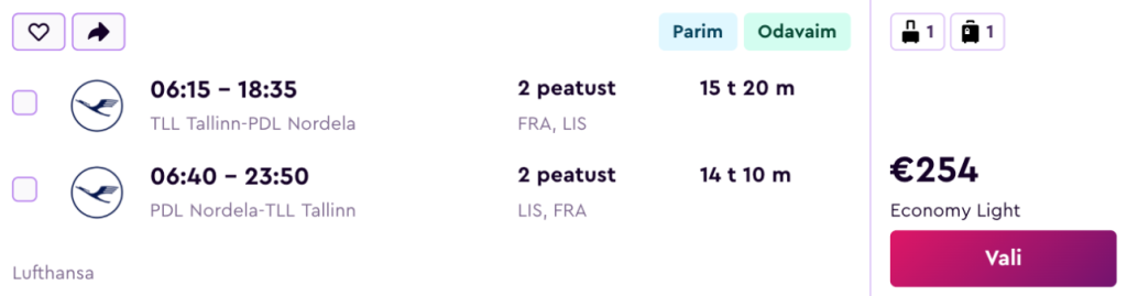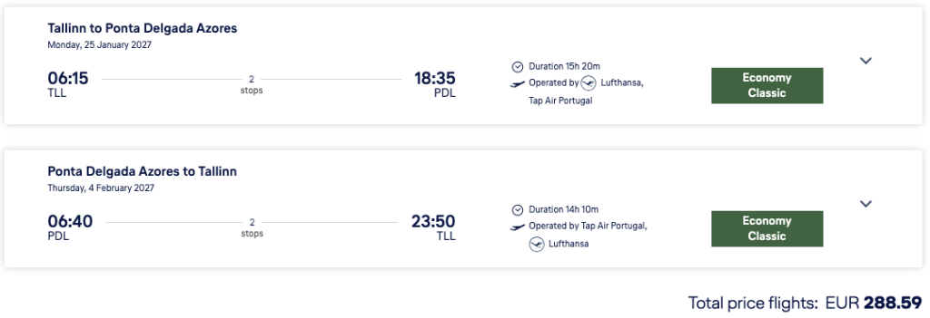 SWISS ja Lufthansa koostöös TAP Portugaliga pakuvad hetkel suurepärase hinnaga lennupileteid Atlandi ookeanis asuvale Assooride saarestikule. Edasi-tagasi lennupiletid Tallinnast São Migueli saarele on saadaval alates 254€ eest ja lennupiletite hinnas sisaldub ka äraantav pagas.