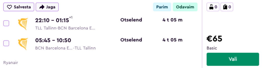 Tallinn - Barcelona - Tallinn alates 65€
