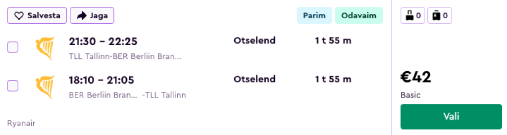 Ryanair pakub hetkel suurepärase hinnaga lennupileteid Saksamaa pealinna. Edasi-tagasi lennupiletid otselendudele Tallinnast Berliini on saadaval alates 42€ eest.