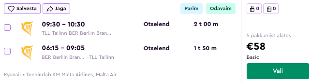 Odavlennufirma Ryanair pakub hetkel suurepärase hinnaga lennupileteid otselendudele Saksamaa pealinna. Edasi-tagasi lennupiletid Tallinnast Berliini on saadaval alates 58€ eest.