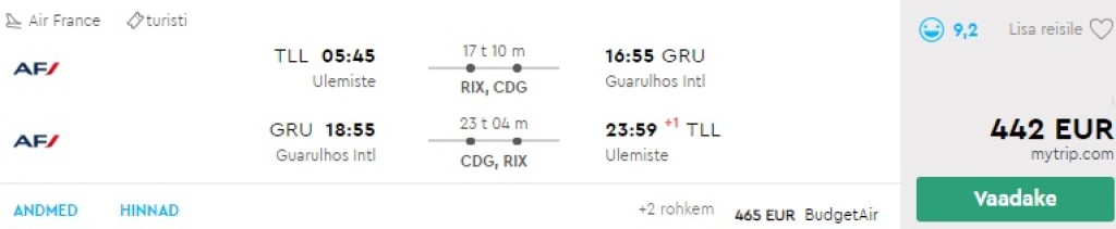 Tallinn- Sao Paulo- Tallinn lates 442€
