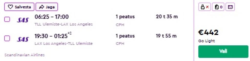 SAS pakub hetkel soodsa hinnaga lennupileteid Californiasse. Edasi-tagasi lennupiletid Tallinnast Los Angelesse on saadaval alates 442€ eest.