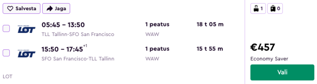 Tallinn - San Francisco - Tallinn alates 425€