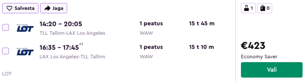 LOT pakub hetkel soodsa hinnaga lennupileteid Kaliforniasse. Edasi-tagasi lennupiletid Tallinnast Los Angelesse ja San Franciscosse on saadaval alates 423€ eest.