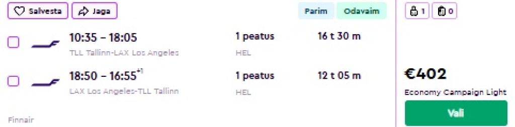 Finnair pakub hetkel kampaaniahinnaga lennupileteid Los Angelesse. Edasi-tagasi lennupiletid Tallinnast on saadaval alates 402€ eest.