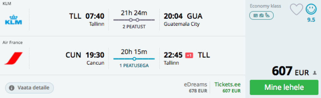 Vihje seljakotireisijatele: Vaata allpool ka väga hea hinnaga open-jaw pileteid, kus saab reisi alustada mõnest Kesk-Ameerika linnast ning tagasilend teha Cancunist.