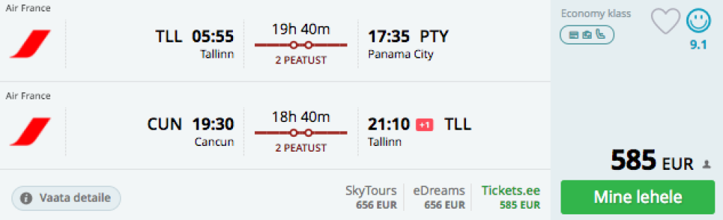 Tallin-Panama//Cancun-Tallinn 585€