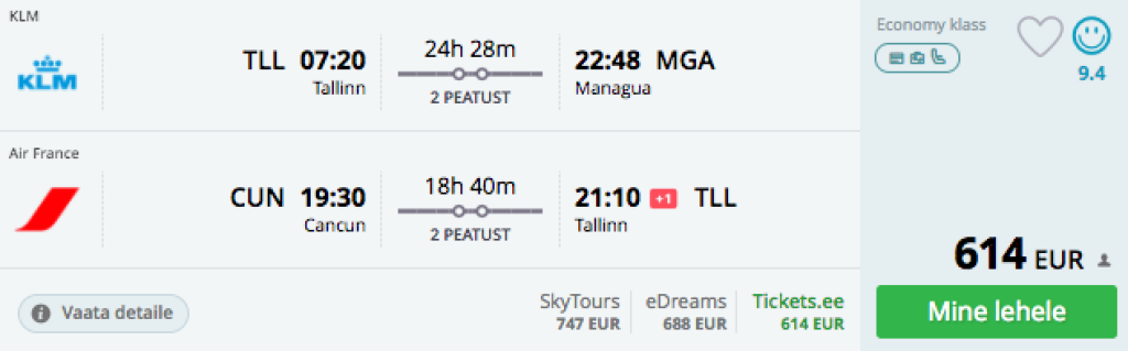 Tallinn-Managua (Nikaraagua)//Cancun-Tallinn 614€