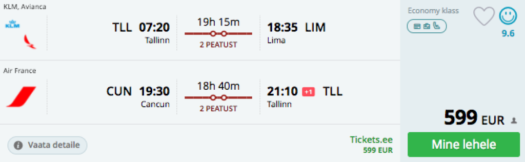 Tallinn-Lima (Peruu)-Cancun-Tallinn 599€