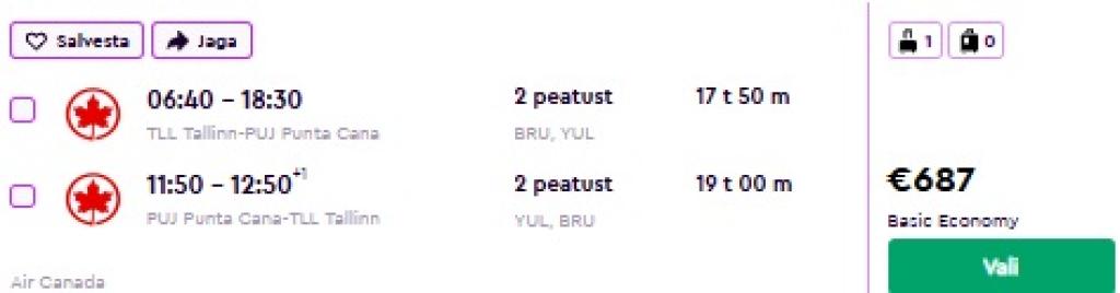 Air Canada koostöös Lufthansaga pakuvad hetkel väga hea hinnaga lennupileteid Dominikaani Vabariiki. Kiirete ümberistumistega lennupiletid Tallinnast Punta Canasse on saadaval alates 687€ eest.