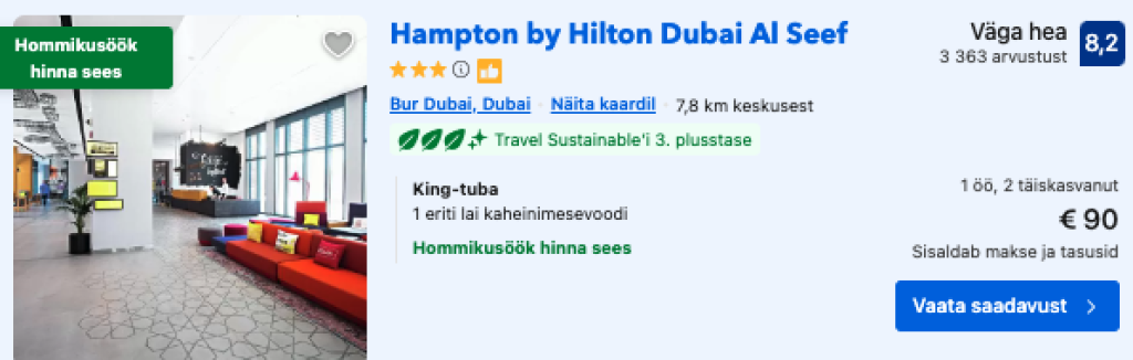 Kui otsid soodsa hinnaga majutust Dubais, siis soovitame parima ülevaate ja hinna saamiseks kasutada majutushindade võrdlusportaali Booking.com