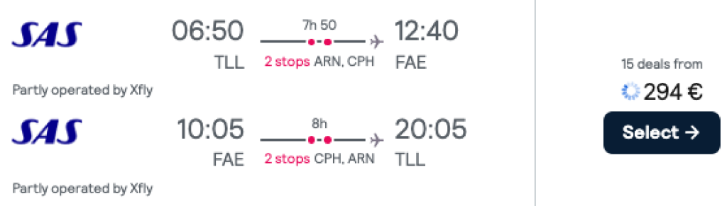 SAS pakub hetkel suurepärase hinnaga lennupileteid Atlandi ookeanis asuvatele Fääri saartele. Kiirete ümberistumistega lennupiletid Tallinnast on saadaval alates 294€ eest.