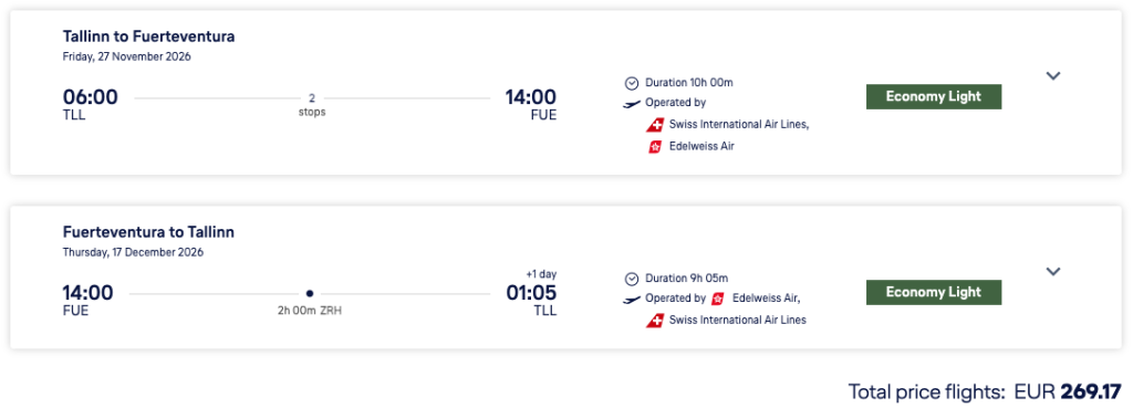 Lufthansa ja SWISS pakuvad hetkel suurepärase hinnaga lennupileteid Kanaaridele. Ühe mugava ümberistumisega lennupiletid Tallinnast Fuerteventurale on saadaval alates 259€ eest.