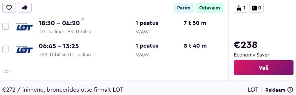 LOT pakub hetkel soodsa hinnaga lennupileteid Gruusiasse. Edasi-tagasi lennupiletid Tallinnast Tbilisisse on saadaval alates 238€ eest. Hea saadavus on ka suveks!