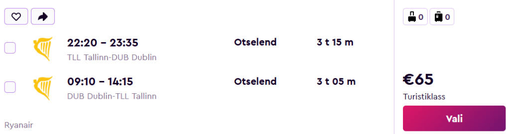 Ryanair pakub hetkel suurepärase hinnaga lennupileteid Iirimaale. Edasi-tagasi otselennud Tallinnast pealinna Dublinisse on saadaval alates 65€ eest.