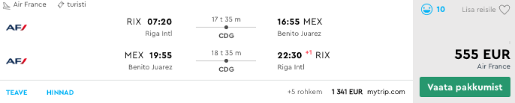 KLM/AF koos partneritega pakuvad hetkel hea hinnaga lennupileteid Mehhiko pealinna Mexico Citysse. Edasi-tagasi lennupiletid Tallinnast leiab üles alates 587€ eest ning Riiast 555€ eest. Samuti leiab hea hinnaga lennupileteid algusega Helsingist. Saadavust leiab teatud kuupäevadel septembris ning detsembris.