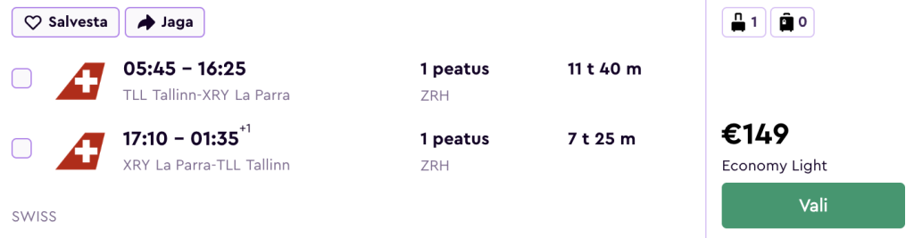 SWISS koostöös Lufthansaga pakuvad hetkel väga hea hinnaga lennupileteid hooajalistele lendudele Lõuna-Hispaanias asuvasse Jerez de la Fronterasse. Kiirete ümberistumistega lennupiletid Tallinnast on saadaval alates 149€ eest.