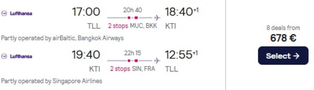 Lufthansa koostöös Singapore Airlinesiga ja Bangkok Airwaysiga pakuvad hetkel väga hea hinnaga lennupileteid Kambodžasse. Edasi-tagasi lennupiletid Tallinnast Phnom Penhi on saadaval alates 678€ eest. Hinnas sisaldub ka äraantav pagas!