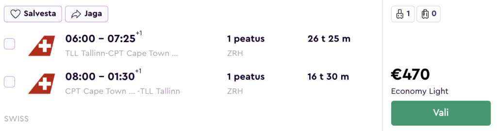 SWISS koostöös Lufthansaga pakuvad hetkel suurepärase hinnaga lennupileteid Lõuna-Aafrika Vabariiki. Ühe ümberistumisega lennupiletid Tallinnast Kaplinna on saadaval alates 470€ eest.