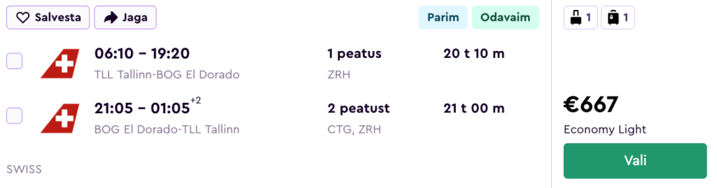 Lufthansa koostöös SWISSiga pakuvad hetkel suurepärase hinnaga lennupileteid talveks Kolumbiasse. Soodsaimad edasi-tagasi lennupiletid Tallinnast Bogotasse on saadaval alates 667€ eest ja ümberistumised toimuvad Frankfurdis või Zürichis.
