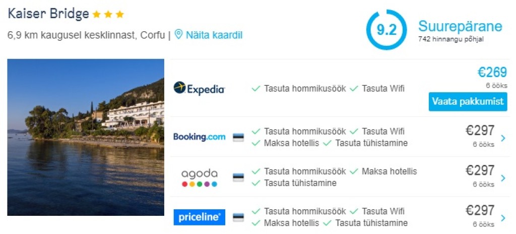 Hotellid KorfulKui otsid soodsa hinnaga öömaja, siis soovitame parima ülevaate ja hinna saamiseks kasutada hotellihindade võrdlusportaali Hotelscombined.ee