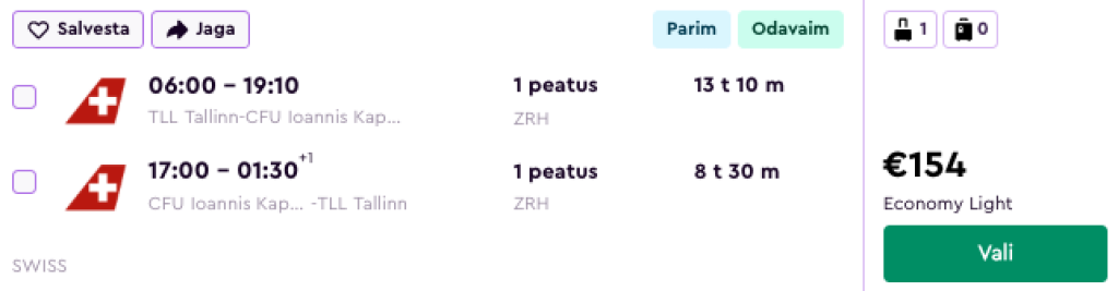 Lufthansaga koostöös SWISSiga pakuvad hetkel suurepärase hinnaga lennupileteid Kreekasse. Edasi-tagasi lennupiletid Tallinnast Korfu saarele on saadaval alates 154€ eest.