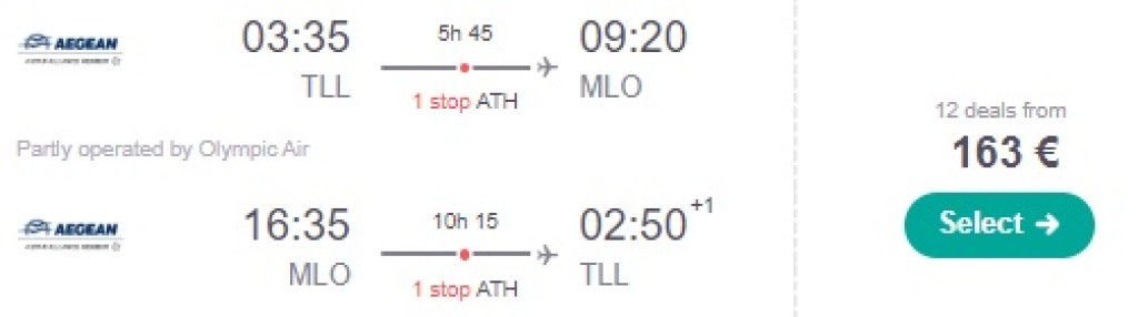 Aegean Airlines pakub hetkel väga hea hinnaga lennupileteid järgmiseks hooajaks Tallinnast Kreeka saartele, Milosele või Samosele Edasi-tagasi lennupiletid on saadaval alates 161€ eest.