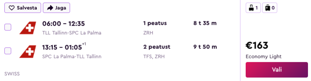 SWISS koostöös Lufthansaga pakuvad hetkel suurepärase hinnaga lennupileteid Kanaaridele. Mugavad edasi-tagasi lennupiletid Tallinnast La Palma saarele on saadaval alates 163€ eest.