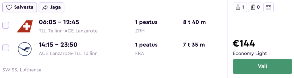 SWISS koostöös Lufthansaga pakuvad hetkel suurepärase hinnaga lennupileteid Kanaaridele. Kiirete ümberistumistega edasi-tagasi lennupiletid Tallinnast Lanzarote saarele on saadaval alates 144€ eest.