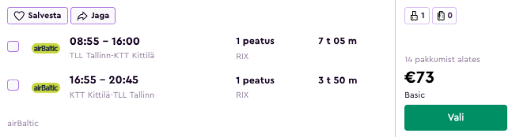 airBaltic pakub hetkel kiirematele suurepärase hinnaga lennupileteid Põhja-Soome, Lapimaale. Edasi-tagasi lennupiletid Tallinnast Kittilässe on saadaval alates 73€ eest.