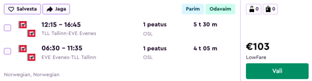 Tallinn - Harstad/Narvik - Tallinn alates 103€