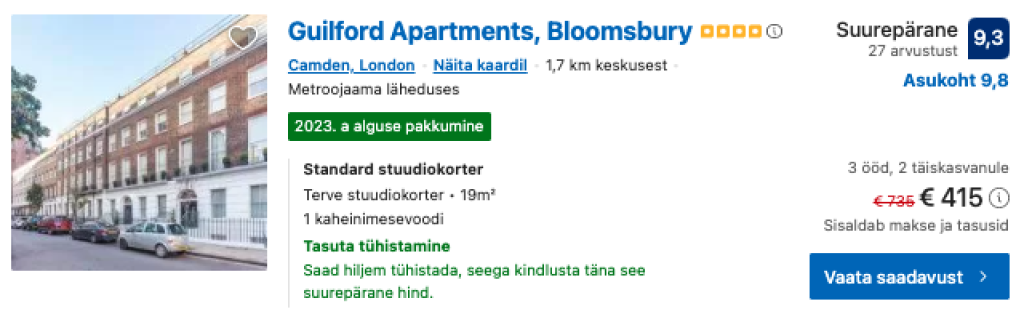 Kui otsid soodsa hinnaga majutust Londonis, siis soovitame parima ülevaate ja hinna saamiseks kasutada hotellihindade võrdlusportaali Booking.com