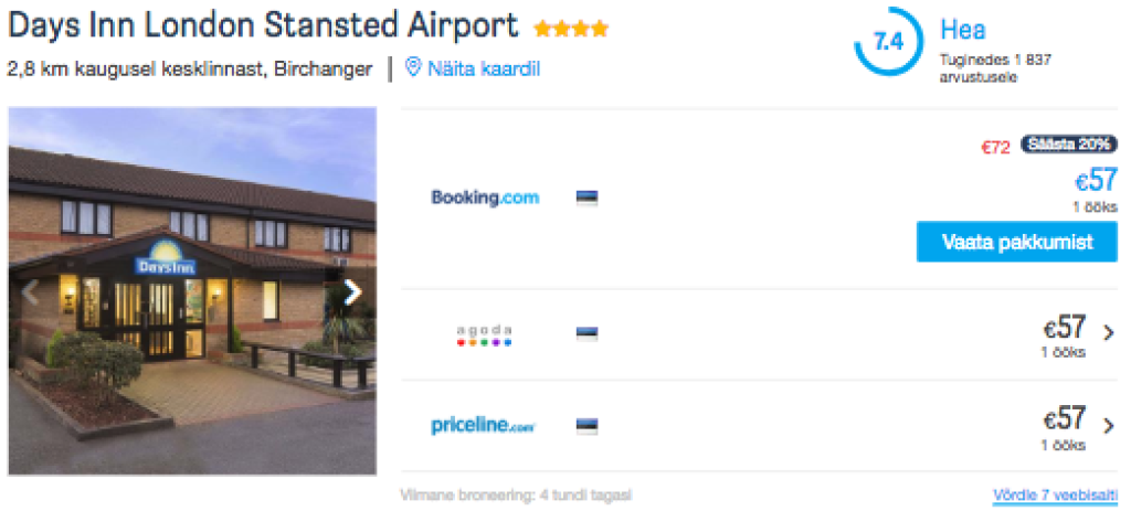 Kuna tagasitulles toimub lend Londonist Tallinna suunal varahommikul, siis soovitame ööbida see öö London Stanstedi lennujaama läheduses. Otsisime välja ka hea hinnaga hotelli: