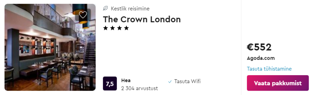 Kui otsid soodsa hinnaga majutust Londonis, siis soovitame parima ülevaate ja hinna saamiseks kasutada hotellihindade võrdlusportaali Momondo.ee