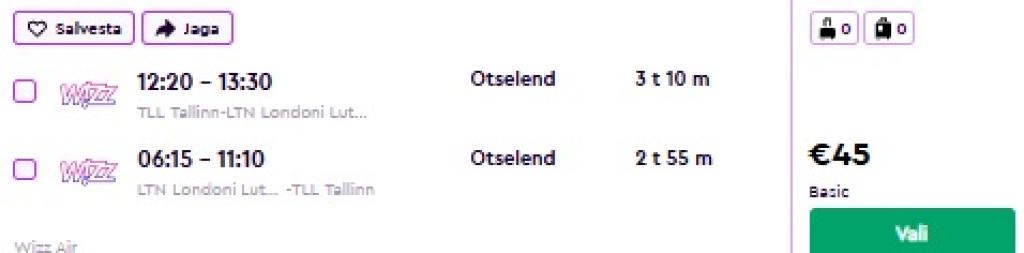 Tallinn - London (Luton) - Tallinn alates 45€
