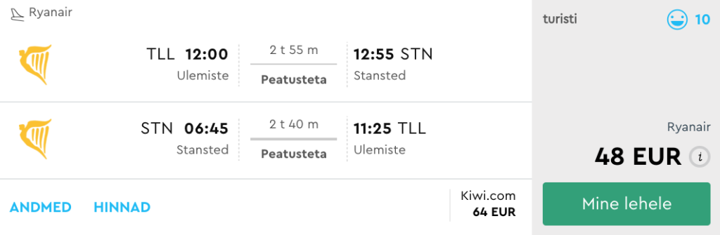 Ryanair pakub hetkel väga hea hinnaga lennupileteid otselendudele Tallinnast Londonisse. Soodsa hinnaga lennupiletid leiab üles septembris ja oktoobris. Lennud toimuvad Tallinnast London Stanstedi lennujaama. Soodsad lennupiletid leiad läbi Momondo.ee või kasutades otselinke allpool.