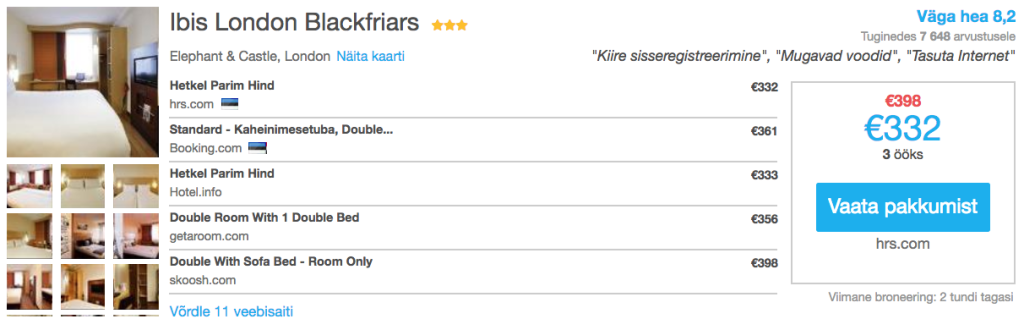 Hotellipakkumised LondonisParima hinnaga hotellipakkumised Londonis leiad üles hotellihindade võrdlusportaalist Hotelscombined.eeMeie soovitus Londoni kesklinnas: