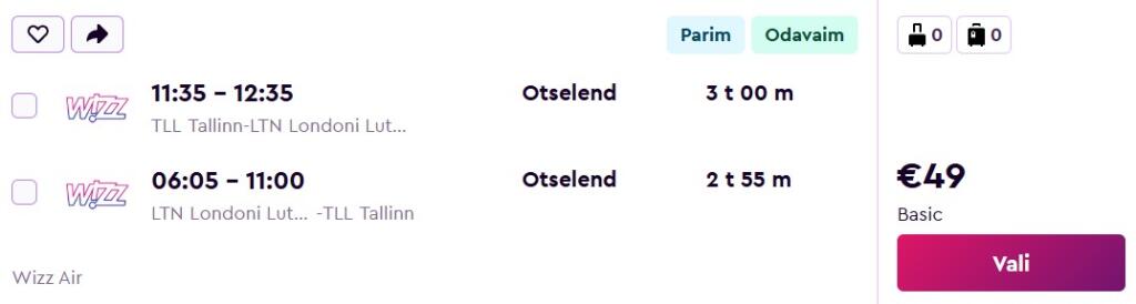 Wizzair pakub hetkel suurepärase hinnaga lennupileteid Inglismaale. Edasi-tagasi otselennud Tallinnast Londonisse on saadaval alates 49€ eest.