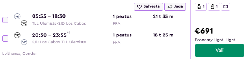 Saksa lennufirma Condor koostöös Lufthansaga pakuvad hetkel väga hea hinnaga lennupileteid Mehhiko kuurortlinna Los Cabosse. Ühe ümberistumisega lennupiletid Tallinnast on saadaval alates 691€ eest.