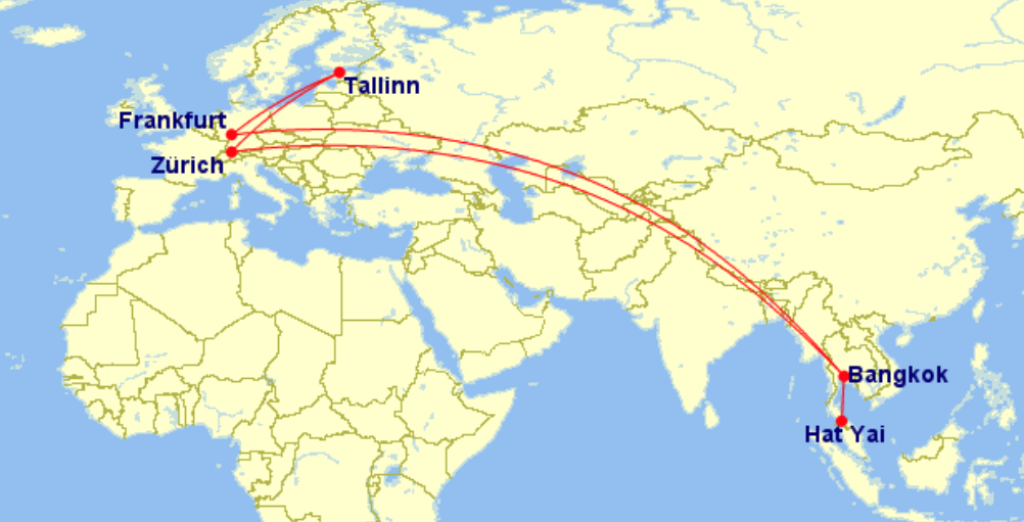 Lufthansa ja SWISS koostöös THAI ja Bangkok Airwaysiga pakuvad hetkel väga hea hinnaga lennupileteid Tallinnast Lõuna-Taisse. Edasi-tagasi lennupiletid Tallinnast Hat Yaisse on saadaval alates 675€ eest.